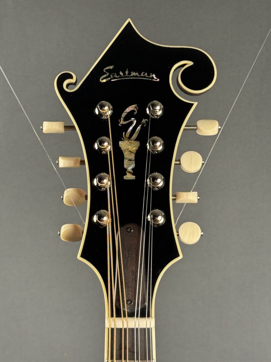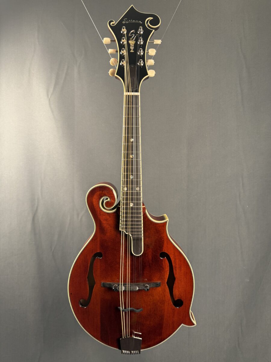 Premium hand‑crafted F‑style mandolin by Eastman, featuring a carved solid Adirondack spruce top and solid highly‑flamed maple back & sides for rich, projecting tone. The F‑hole body delivers crisp articulation and strong presence—ideal for gigging, jam sessions, or recording. Appointed with an ebony fingerboard, adjustable compensated ebony bridge, full ivoroid binding, maple neck, bone nut and Gotoh tuners. Includes a hardshell case and pro setup.
