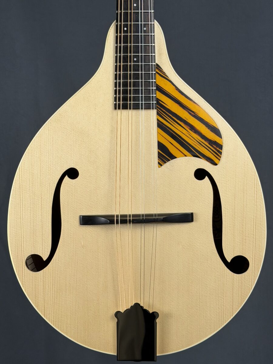 Made on the same framework as our HM series, but with smooth, classic f-holes and a sleek “snake” head! One of the very first with a “fat” carved back!